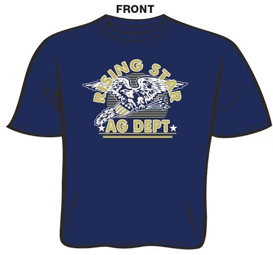 Sample shirt with 2 color screen printing.  We can fully customize this design for your school or chapter.
